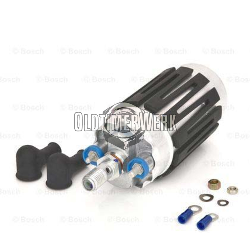 Electric petrol pump with 6.5 bar pressure and screw connection for injection models. It is installed on the underbody and supplies the fuel with the necessary pressure for K-Jetronic injection systems. The pump is suitable for VW Caddy, Golf 1, Golf 1 Cabrio, Jetta 1, Scirocco 1 & 2 with 6.5 bar systems.